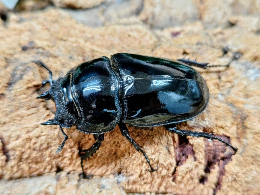 エナメルの様な美しい艶と重厚なスタイルで人気のクワガタ。